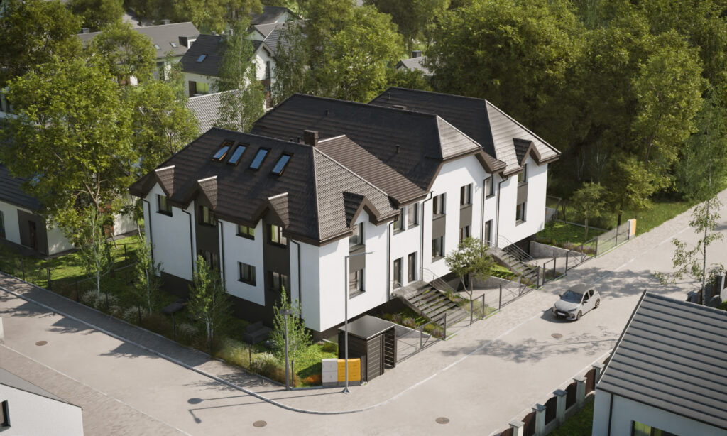 Inwestycja składa się z sześciu mieszkań o powierzchni od 87 m² do 110 m², zaprojektowanych z myślą o maksymalnej wygodzie przyszłych mieszkańców – w tym rodzin z dziećmi. Budynek wyróżnia się estetycznym, bardzo eleganckim wyglądem, który doskonale wpisuje się w otoczenie, oferując Ci komfortową przestrzeń do życia.