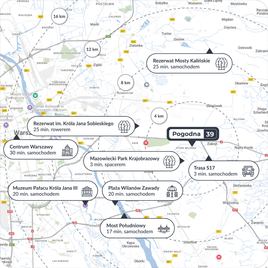 Pogodna 39 w Warszawie to miejsce, które harmonijnie łączy codzienną wygodę z bliskością natury. Z jednej strony masz tu pełną infrastrukturę miasta, z drugiej zaś, w odległości kilku minut pieszo, czekają na Ciebie parki i lasy, idealne na aktywny wypoczynek. Lokalizacja ta jest również świetnie skomunikowana – bliskość południowej obwodnicy Warszawy oraz tras S2 i S17 umożliwia szybki dojazd do centrum stolicy. Nie musisz polegać wyłącznie na własnym samochodzie. Dobrze rozwinięta sieć komunikacji miejskiej zapewnia łatwy dostęp do wszystkich kluczowych punktów miasta.