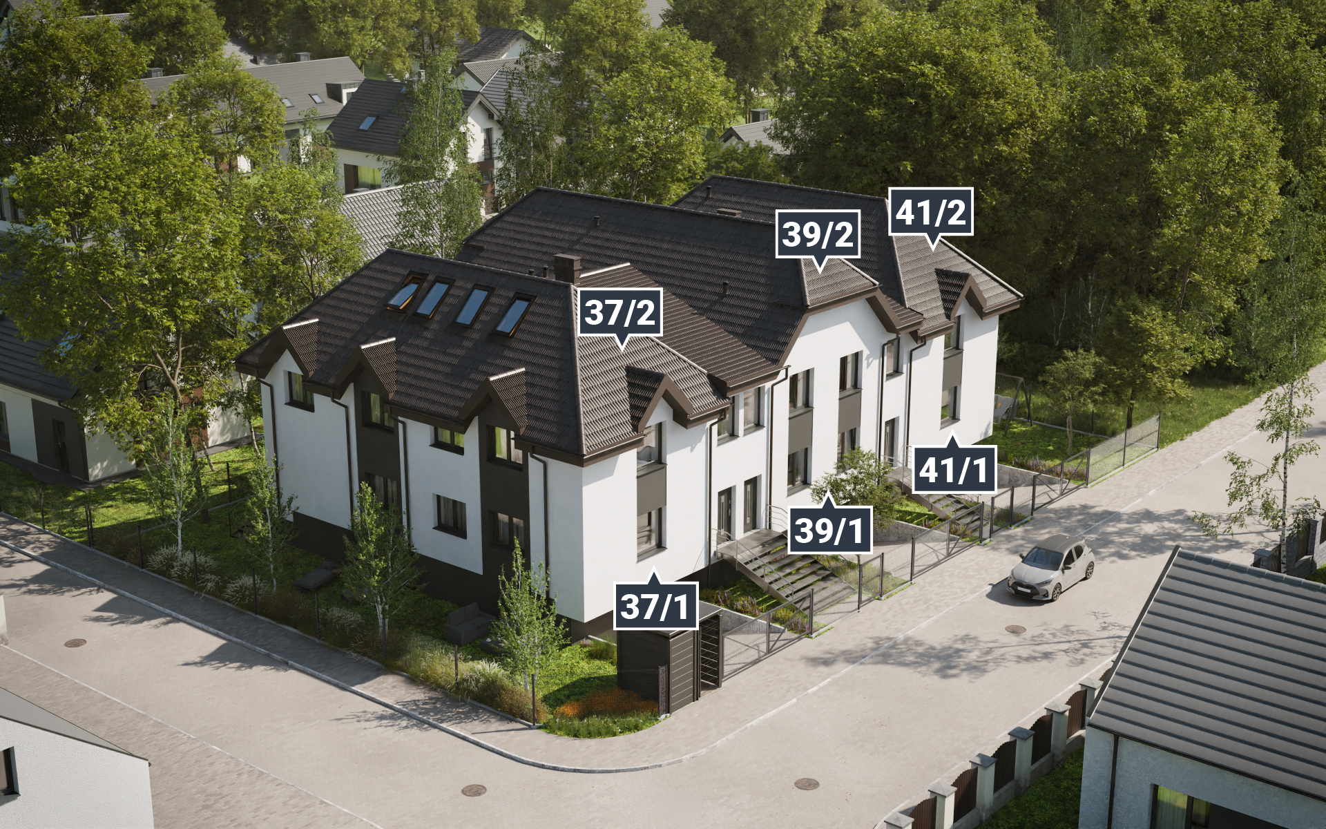 Do mieszkań na parterze przynależą przytulne ogródki, które stanowią idealne miejsce do relaksu na świeżym powietrzu. Natomiast lokale na piętrze mają do dyspozycji przestronne balkony oraz poddasza do zabudowy, co daje Ci dodatkowe możliwości aranżacyjne i zwiększa funkcjonalność wybranej przestrzeni. Zwiń ∧